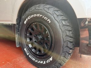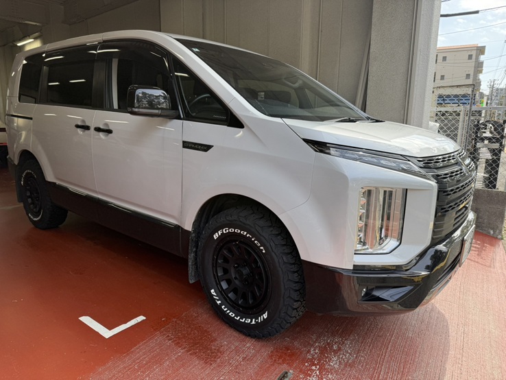 SA BLOG ブログ 三菱 デリカD:5 タイヤホイール装着作業 カテゴリ: タイヤ、ホイール 三菱 2026-03-09 三菱 デリカD:5 タイヤホイール装着作業(DELTA FORCE OVAL&BFGoodrich)